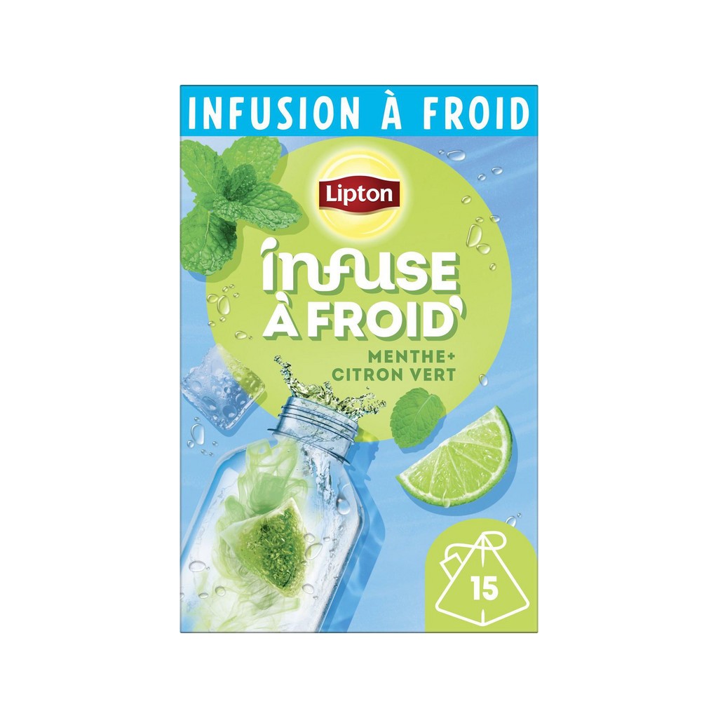 LIPTON Infusion à froid menthe citron vert (la boite de 15 sachets). détaillés sur l'emballage extérieur.