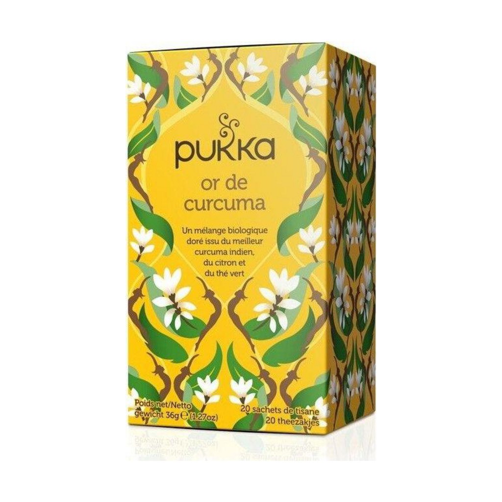20 The Or De Curcuma ( Infusettes) Pukka. détaillés sur l'emballage extérieur.