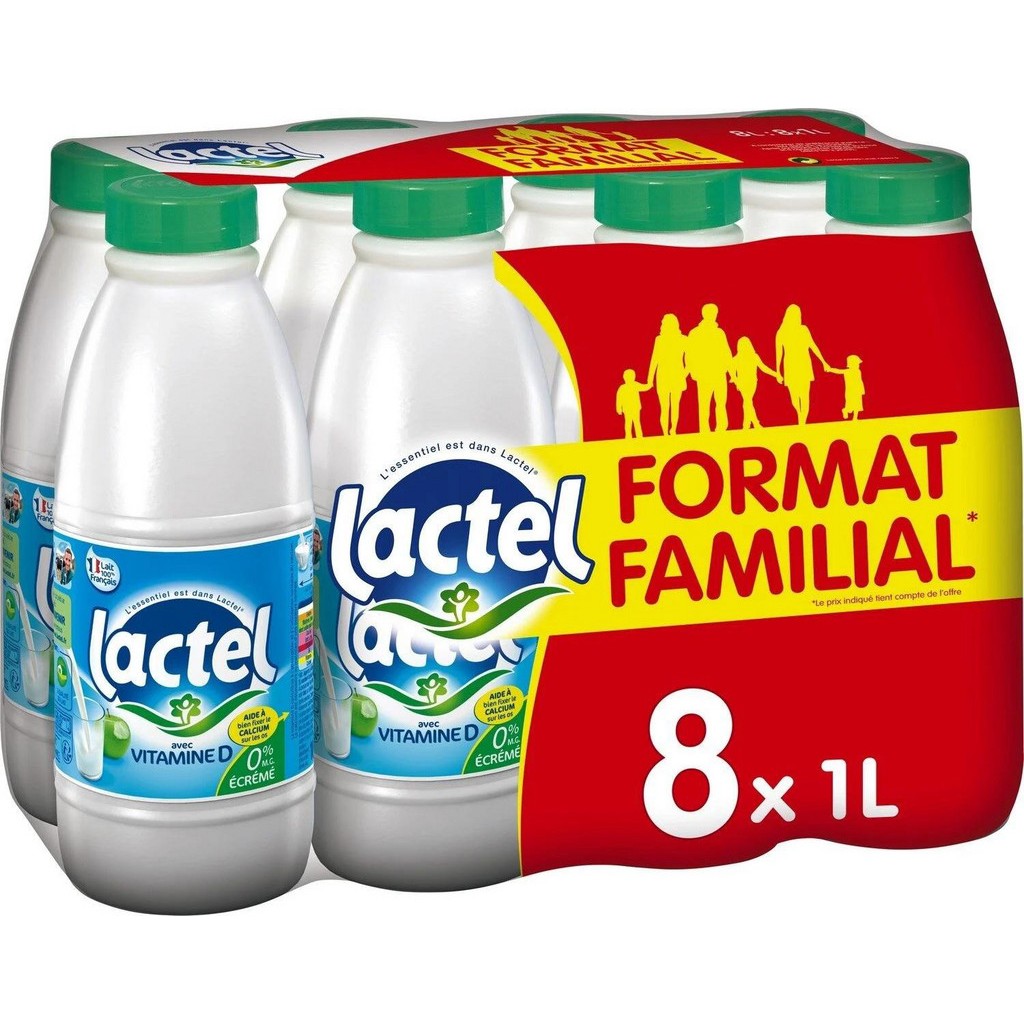 Lait Lactel Vitamine D écrémé 1L (pack de 8)